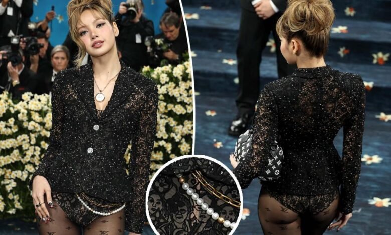 El atuendo de Lisa presentaba un blazer negro bordado, medias de logotipo y un traje de encaje que dejó poco a la imaginación, especialmente alrededor de su mitad inferior.