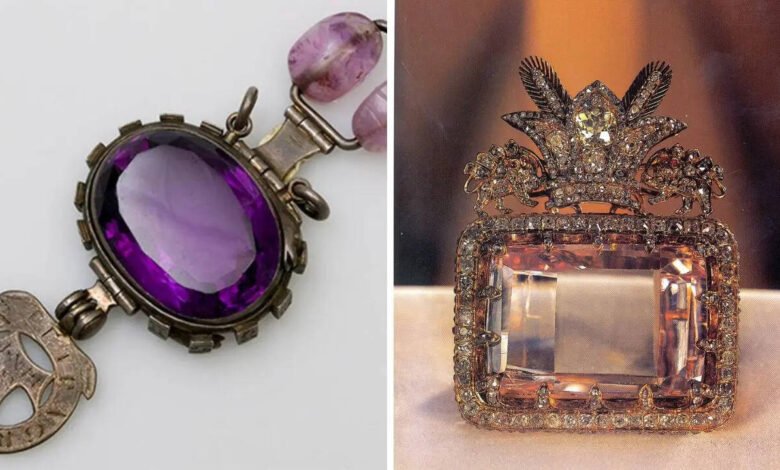 Delhi Purple Sapphire (Foto: X) y Darya-I-Noor (Foto: Wikimedia Commons)