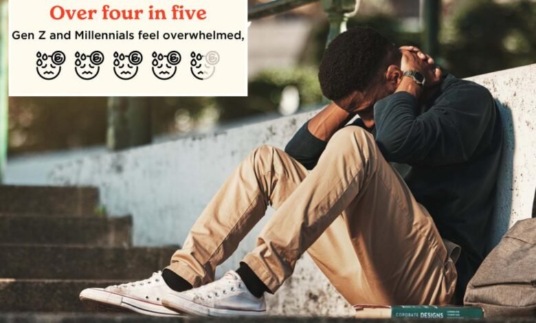La encuesta de 2.000 adultos estadounidenses descubrió que el promedio Gen Zer y Millennial se sienten abrumados 17 días fuera de un mes típico.