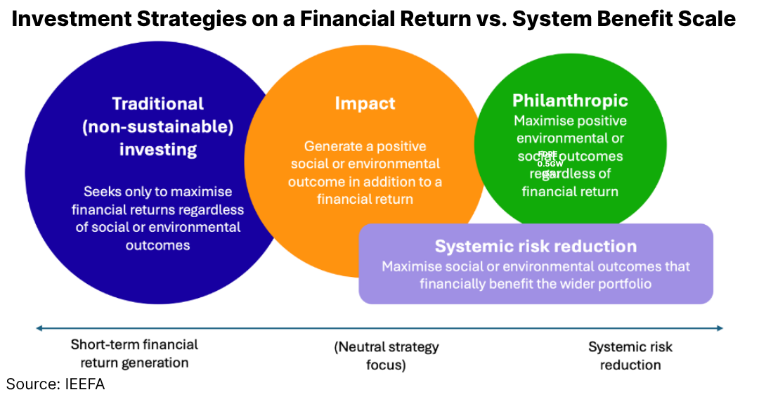 Obligados a mirar más allá de MPT, los inversores se han basado tradicionalmente en la participación corporativa para combatir el riesgo sistémico, pero se están haciendo preguntas sobre cuán significativa ha sido esa actividad. IEEFA cree firmemente que los participantes del mercado financiero no son espectadores. Sin embargo, con la arquitectura de inversiones moderna construida casi por completo en torno a MPT, el desarrollo de productos financieros en sí es parte del problema. Los objetivos de rendimiento estrictos a corto plazo restringen severamente los enfoques existentes de dirigirse significativamente a fuentes de riesgo sistémico. En respuesta, IEEFA propone el establecimiento de «Fondos de reducción de riesgos sistémicos» (SRR)Una nueva generación de vehículos de impacto que se asentaría fuera de la asignación tradicional de activos estratégicos.