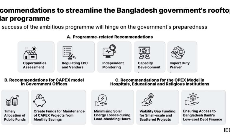 Bajo el nuevo programa solar de la azotea de Bangladesh, las oficinas gubernamentales implementarán instalaciones a través del modelo CAPEX respaldado por fondos públicos, mientras que los hospitales e instituciones educativas operarán bajo el modelo OPEX sin costo inicial.
