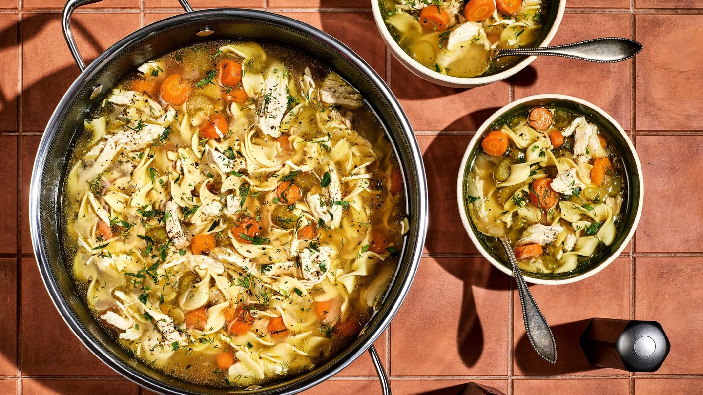 Agregar esto Pollo escalfado con salsa de cebollín de jengibre Receta a la rotación de su cena para una comida reconfortante perfecta. Este jugoso pollo con poca lenta se sirve con arroz aromático infundido con grasa de pollo representada y una salsa de cebollín de jengibre sabrosa y contundente. La crujiente cubierta de piel de pollo frito y hierbas frescas ofrece una comida suntuosa. Los ingredientes son simples y asequibles. Prueba esta receta fácil de exponer esta noche con la ayuda de Hexclad’s Sartén híbrido de 10 pulgadasLo cual es perfecto para recortar la piel de pollo que requiere esta receta y hacer el arroz de jazmín.