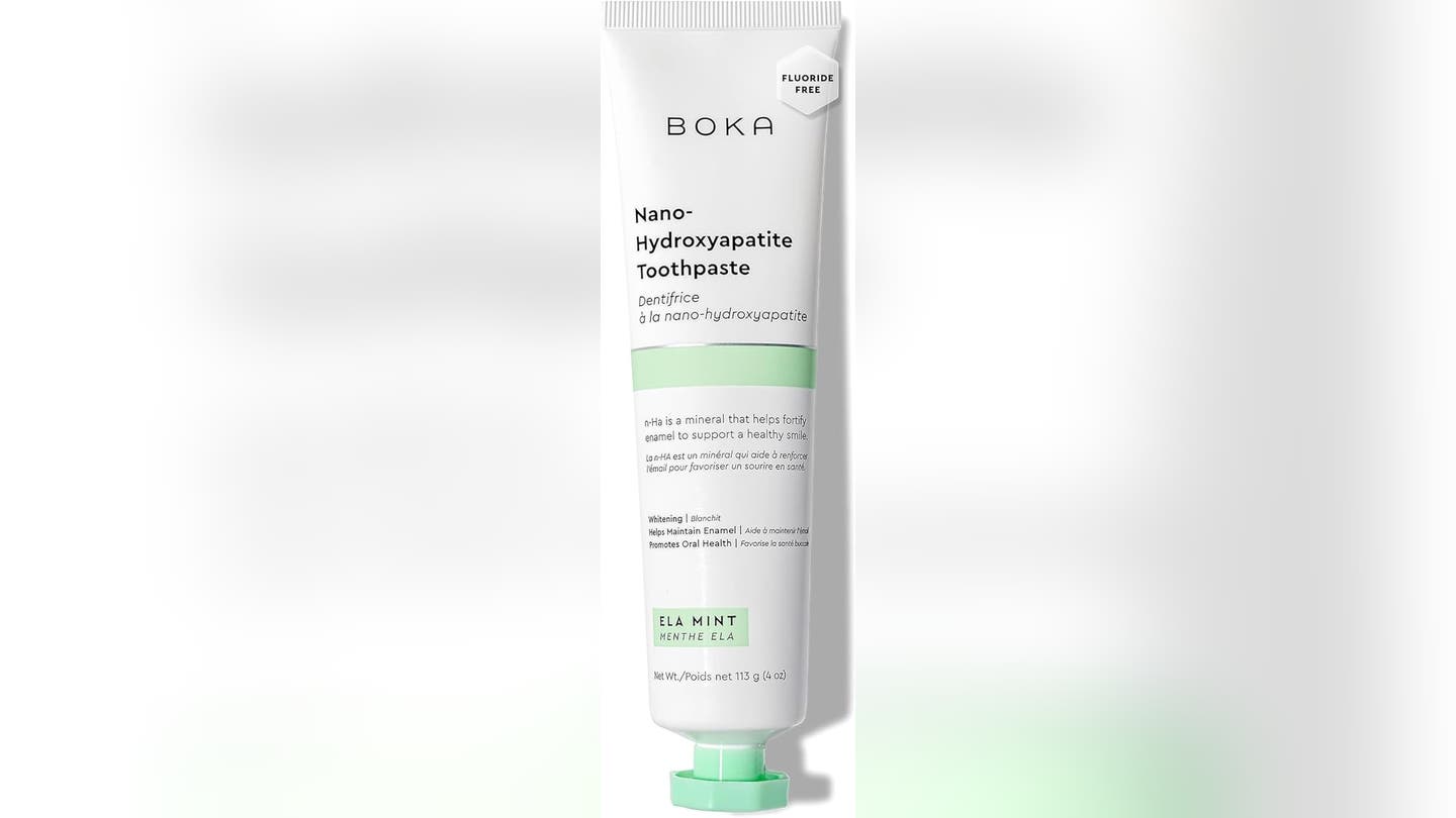 Pasta de dientes sin flúor de Boka Utiliza el ingrediente nano-hidroxiapatita para fortalecer la superficie del diente. Elimina las manchas de la superficie y puede restaurar el brillo natural de los dientes mejorando la suavidad del esmalte. El sabor a la menta de Ela tendrá la boca renovada.