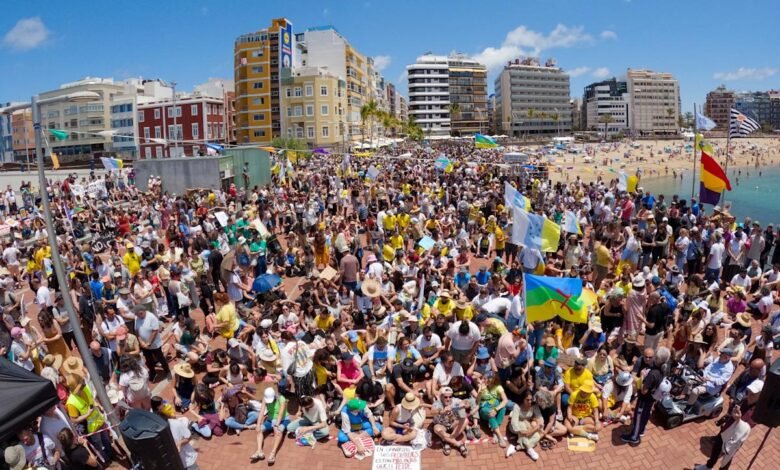 Arraigando a las multitudes de verano, miles protestan contra el abroutismo en las populares islas canarias de España
