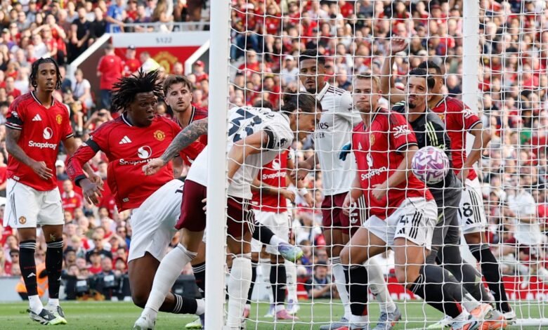 El defensor del Arsenal Riccardo Calafiori asintió desde corta distancia en el minuto 13 el domingo después de que el portero de United Back-up Altay Bayındır agitó la pelota desde una esquina azotada por Declan Rice.
