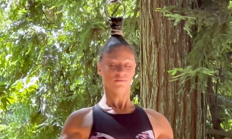 La percha profesional, que vive en Texas y es un cuatro veces competidor en NBC’s Guerrero ninja americanoEntrenado durante dos años antes de tratar de romper el récord más tiempo suspendido por el cabello, según GWR.