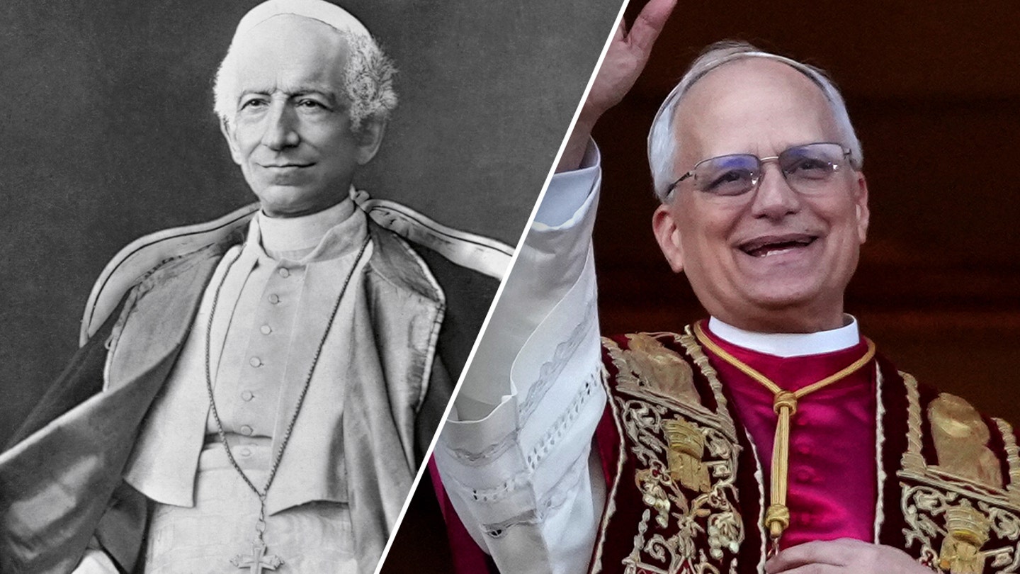 El recién elegido Papa Leo XIV (derecha) tomó su nombre papal del Papa Leo XIII de finales del siglo XIX (izquierda). (Getty Images/Fox News)