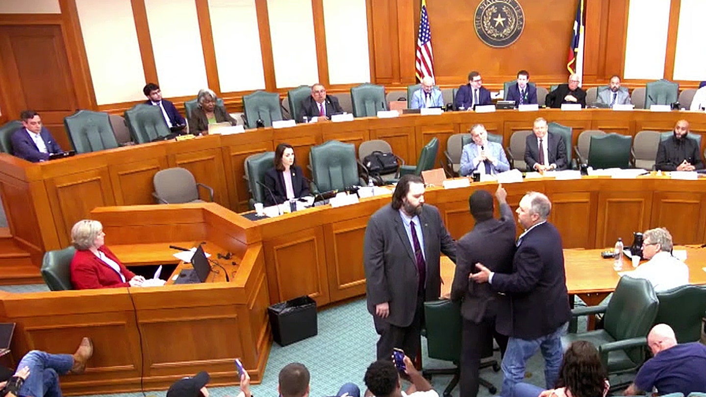 Las tensiones se hirvieron en el Capitolio de Texas El jueves por la noche, cuando un candidato demócrata al Congreso fue eliminado y arrestado por la fuerza durante una audiencia de redistribución de distritos volátil.