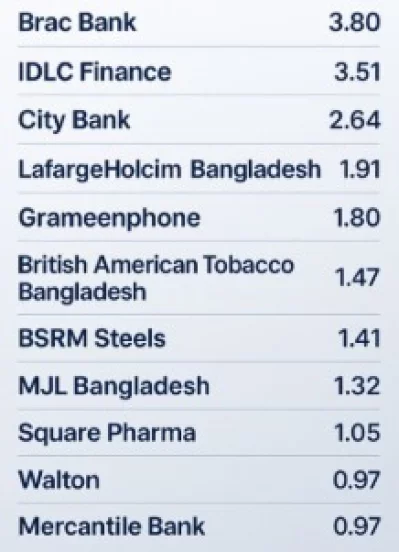 La lista está superada por Brac Bank, que recibió un puntaje promedio de 3.80. El siguiente es IDLC Finance (3.51).