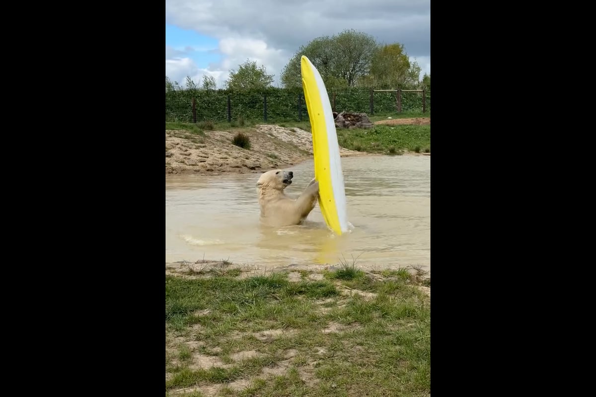 Los osos polares se vuelven locos en Wildlife Park y llegan al agua … en un kayak