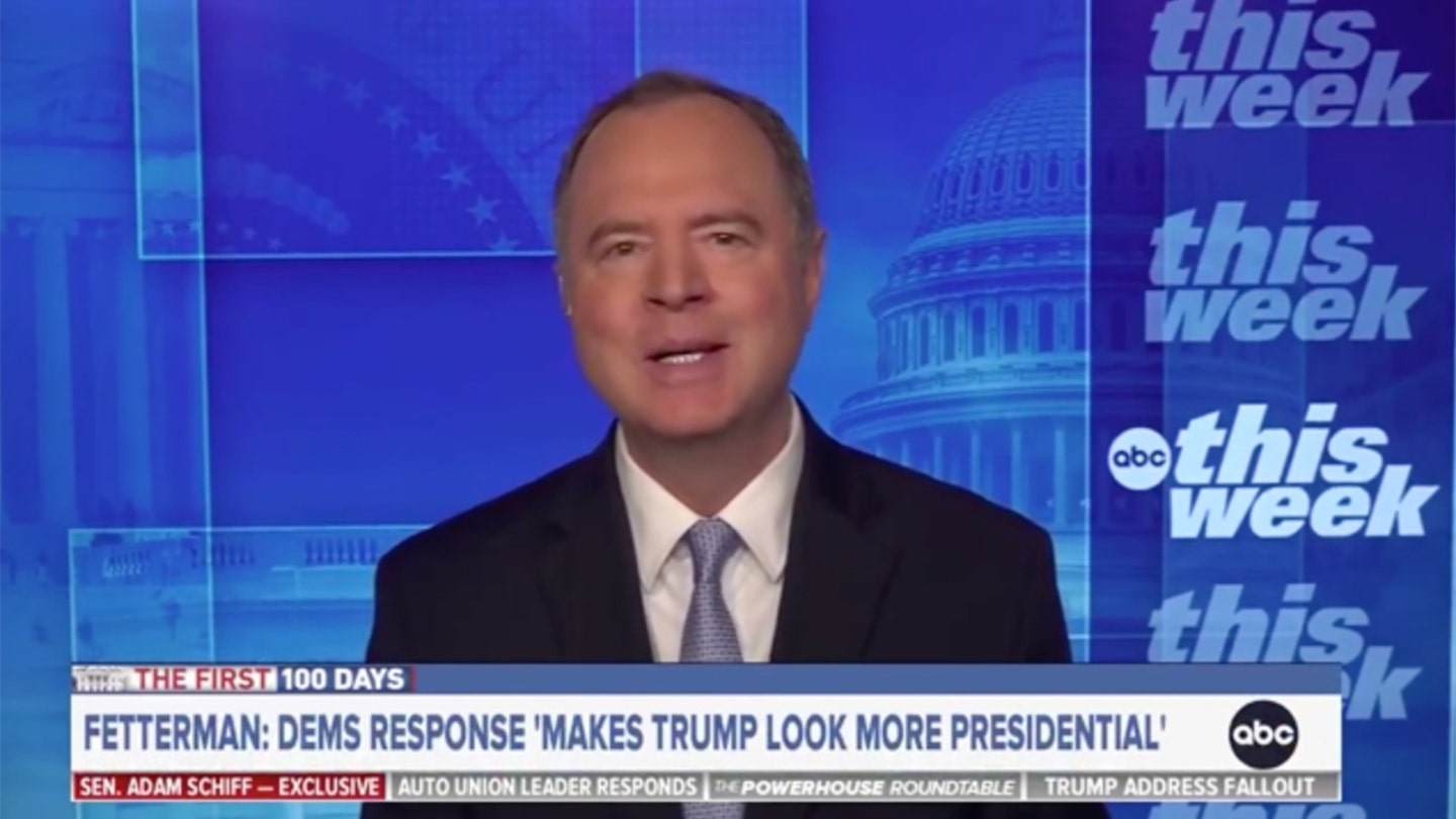 El senador Adam Schiff lamentó la respuesta democrática al discurso del Congreso del presidente Trump el domingo durante el «esta semana» de ABC. (Captura de pantalla/ABC/thisweek)