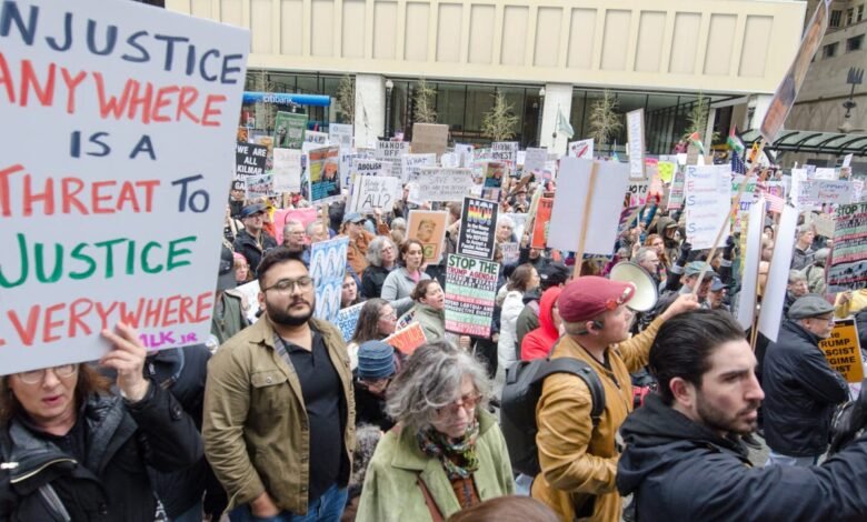 Archivo: miles de manifestantes se unen en Chicago, Illinois, ya que cientos de protestas «50501» y eventos comunitarios contra la administración Trump se llevaron a cabo en los Estados Unidos el 19 de abril de 2025. (Foto de Jacek Boczarski/Anadolu a través de Getty Imag