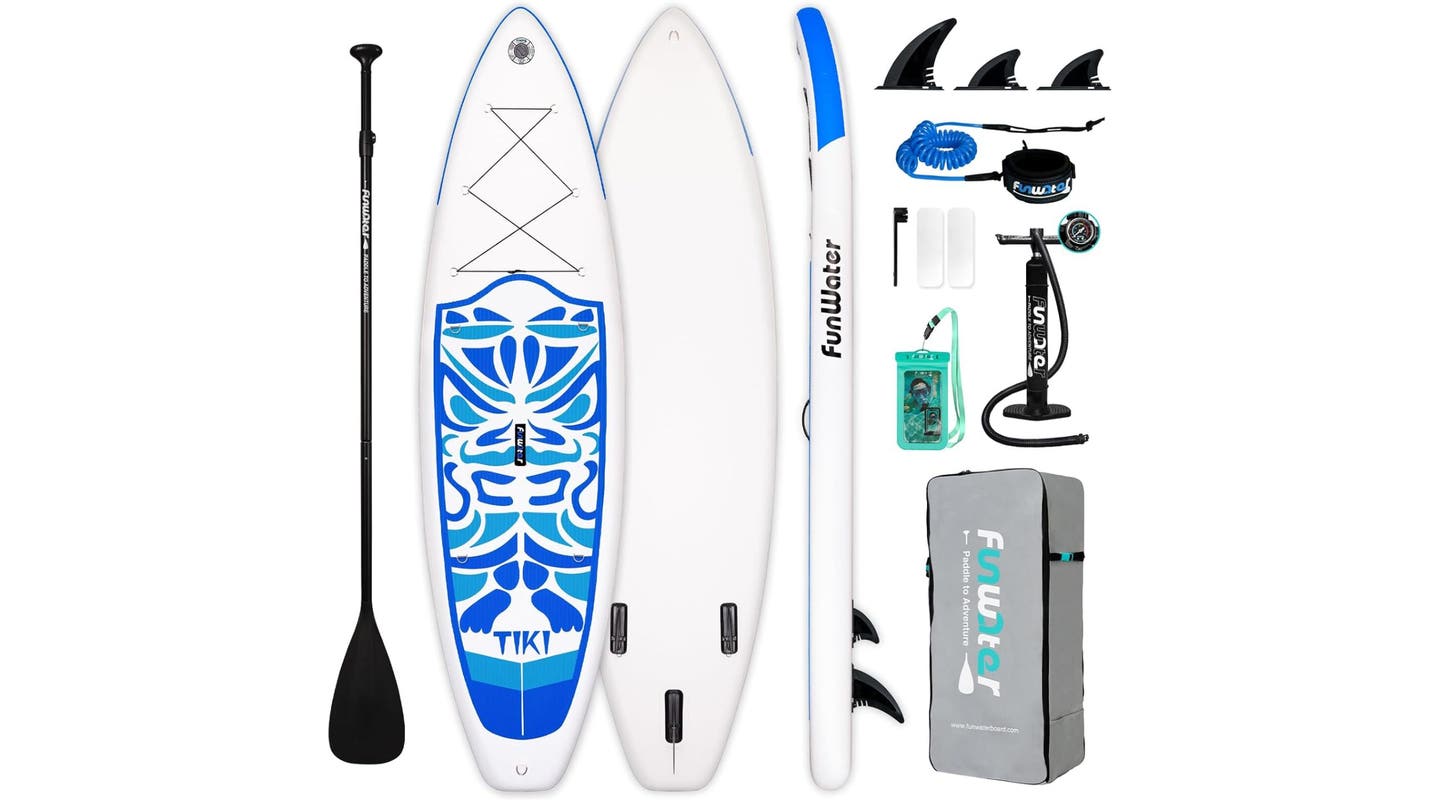 Paddle Boarding no solo es divertido, es una excelente manera de hacer ejercicio. Un paleta inflable es una excelente manera para que usted o sus hijos comiencen. Este tablero es ligero, que llega a poco menos de 18 libras, por lo que es fácil llevar a la playa. Está construido con una capa de PVC con aletas extraíbles para mayor estabilidad.