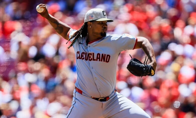 El lanzador titular de los Cleveland Guardianes, Luis Ortiz, lanza un lanzamiento durante la primera entrada contra los Rojos de Cincinnati en Progressive Field el 9 de junio de 2025. (Ken Blaze/Imágenes de Imagn)