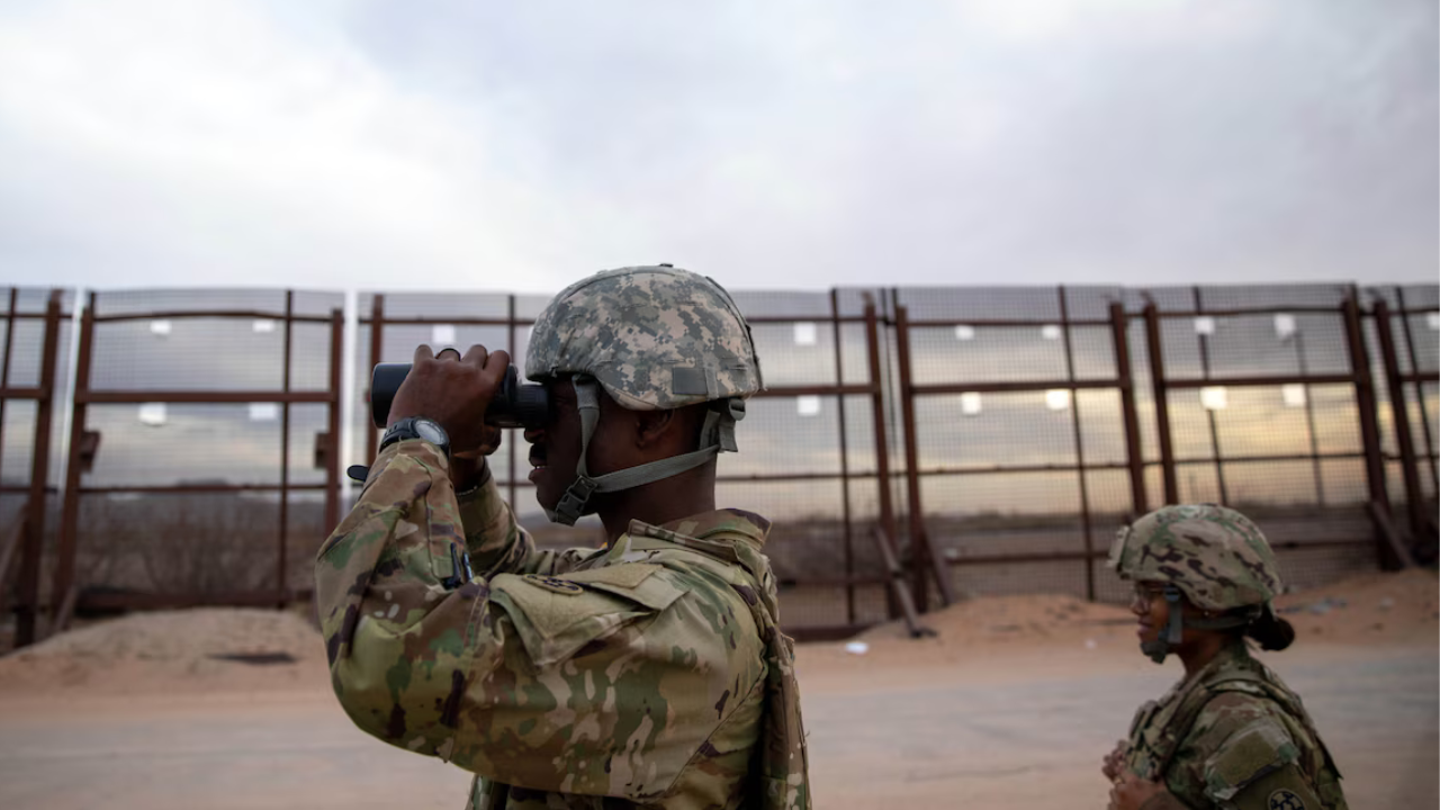 Los soldados asignados a la compañía de 192º intendente de Milán, Ohio, monitorean la frontera sur cerca de Santa Teresa, NM, 28 de enero de 2025. (Ministerio de defensa)