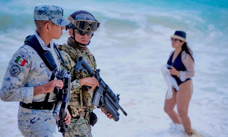 Turistas visitando Cancún y Riviera Maya de México este verano están siendo recibidos no solo con brisa oceánica y cócteles junto a la piscina, sino por patrullas fuertemente armadas.