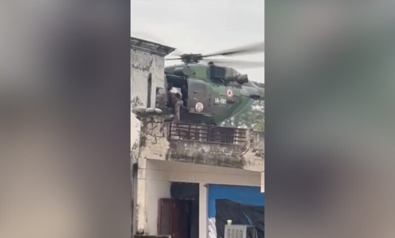 El helicóptero militar rescata a las personas de la construcción colapsante en la India | Inundaciones