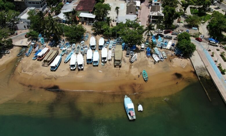 Las olas se estrellaban contra la Esplanada en Puerto Escondido al anochecer, inundando botes de pesca de madera que habían sido arrastrados allí por seguridad. La playa desapareció bajo olas, y la marea ascendente ya había llegado a los interiores de algunos restaurantes frente al mar.
