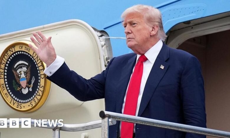 Getty ImagesEl presidente de los Estados Unidos, Donald Trump, dijo «es genial estar en Escocia» mientras aterrizaba para una visita privada de cuatro días.