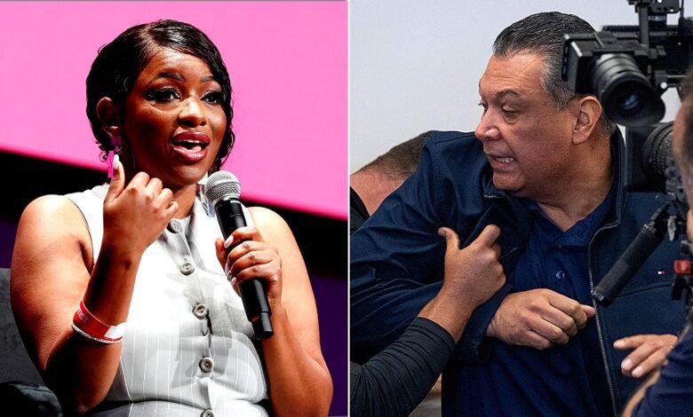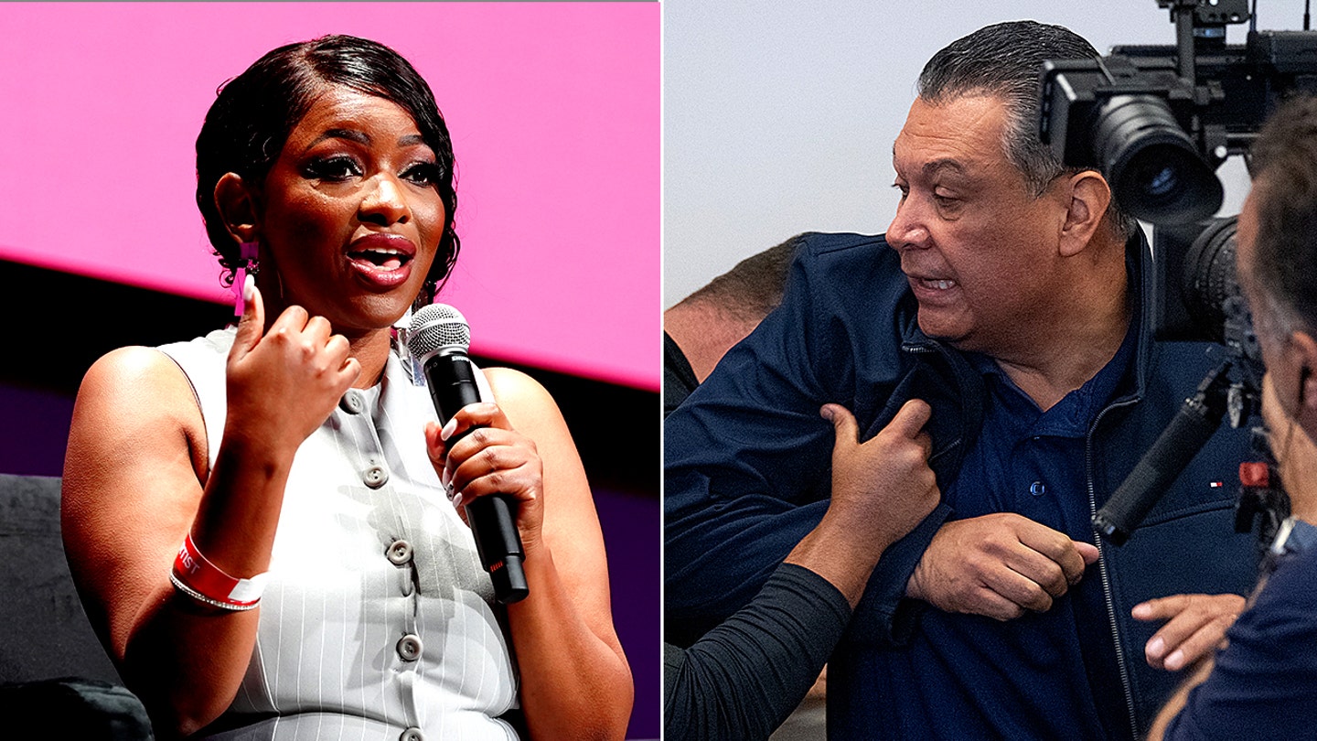 La representante estadounidense Jasmine Crockett dijo en una nueva entrevista de podcast que comenzó a llorar mientras veía un video de la eliminación del senador de California Alex Padilla de una conferencia de prensa del Departamento de Seguridad Nacional en junio. (Getty Images)