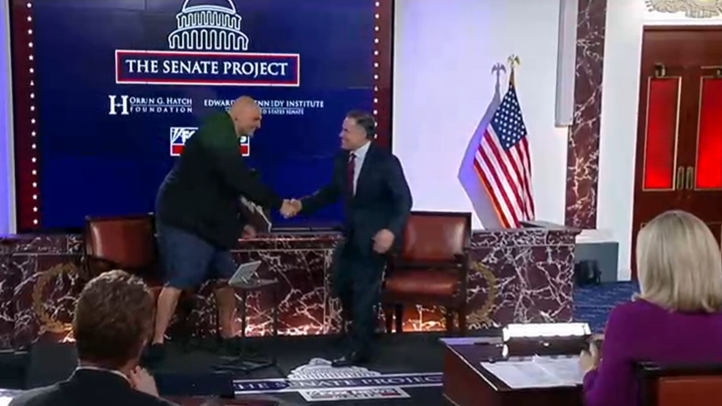 Pennsylvania Sens. Dave McCormick y John Fetterman se dan la mano por delante de la discusión del Proyecto del Senado. (Nación Fox)
