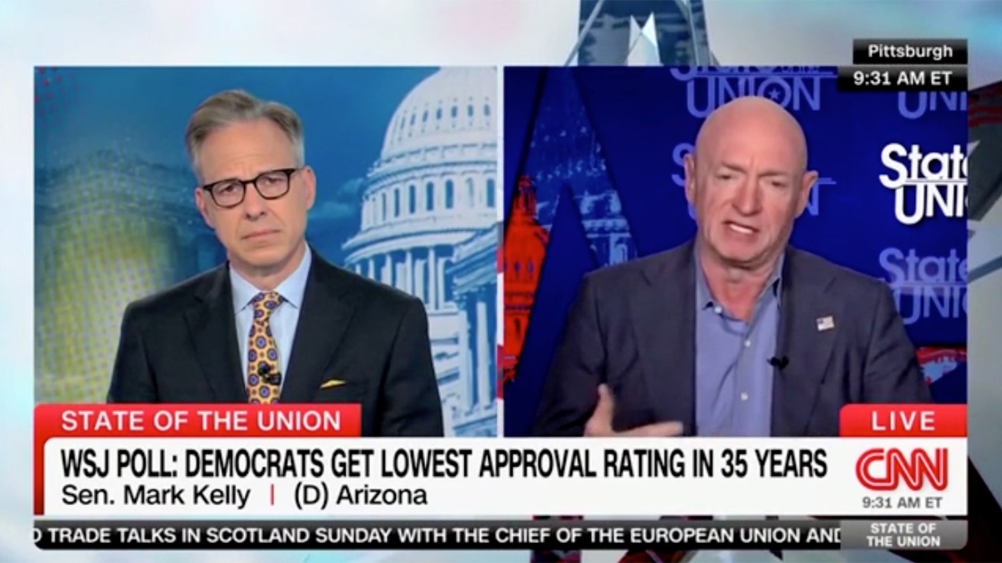 El senador Mark Kelly habló con Jake Tapper de CNN sobre una nueva encuesta que muestra la disminución de la popularidad del Partido Demócrata. (CNN)