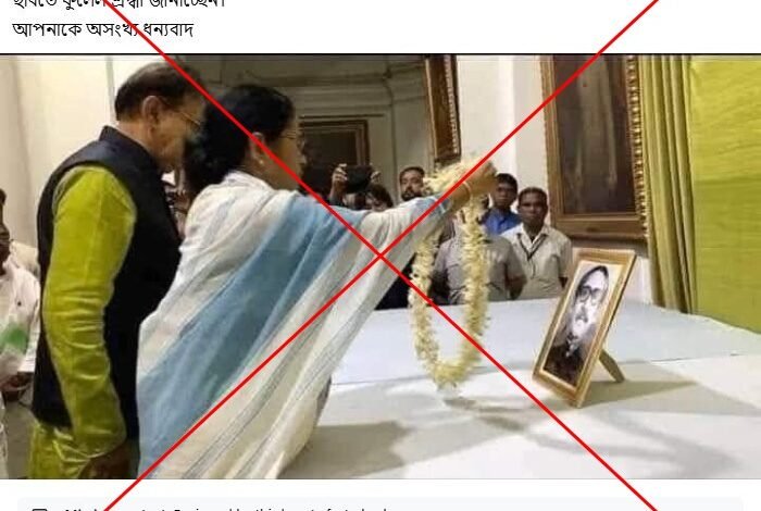 Sin embargo, la imagen que circula en línea no muestra al Ministro Principal de Bengala Occidental que también rinde homenaje a Rahman en el aniversario de su muerte.