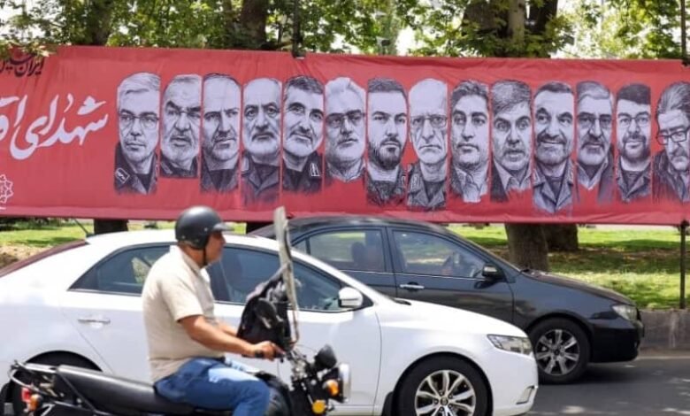 Las imágenes de los comandantes militares iraníes, los científicos nucleares y otros asesinados en huelgas israelíes se muestran en el cementerio de Behesht Zahra en el sur de Teherán, Irán, el 11 de julio de 2025 (crédito: Majid Asgaripour/Wana (Agencia de Noticias de Asia Occidental) a través de Reuters)