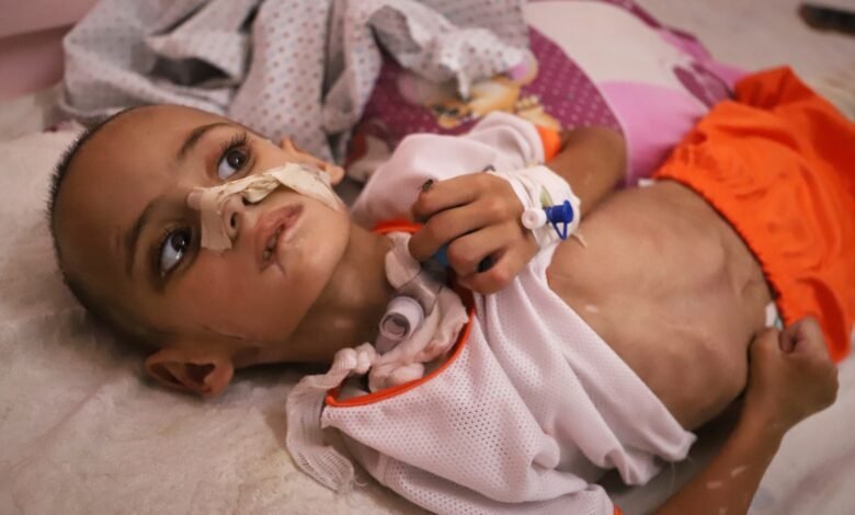 Ahora en el Hospital Nasser en Khan Younis, AMR ha dejado cuidados intensivos pero sufre de desnutrición severa. La leche fortificada que requiere desapareció durante el bloqueo de los meses de Israel.