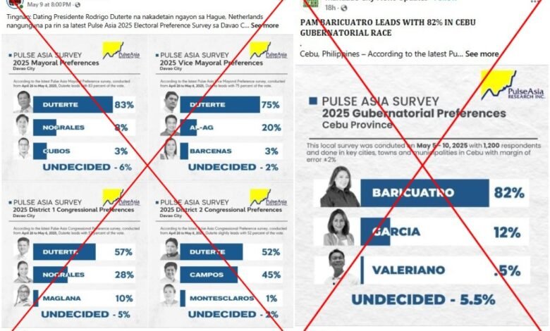 La organización filipina Pulse Asia Research negó haber publicado los resultados de la encuesta preelectoral para un par de razas locales, ya que la nación del sudeste asiático tuvo una votación crucial a mitad de período el 12 de mayo de 2025. Los errores en las imágenes circulantes indican que están inauténtico.