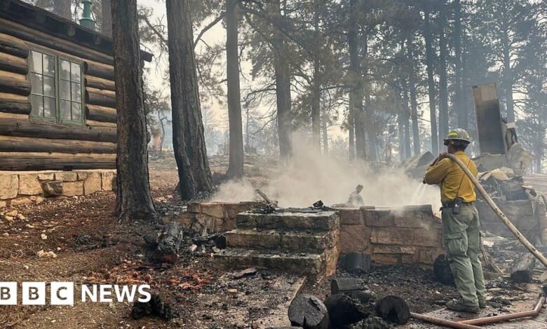 Un furioso incendio forestal cerca del Gran Cañón en los Estados Unidos ha destruido docenas de edificios, incluido un albergue histórico que fue el único alojamiento disponible dentro del borde norte del Parque Nacional.