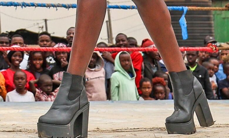 Una modelo en Kenia se fotografia el sábado en un ring de boxeo antes de un torneo para marcar el Día Internacional de la Juventud en Mathare Slum en la capital, Nairobi. (Daniel Irungu/Shutterstock/EPA)
