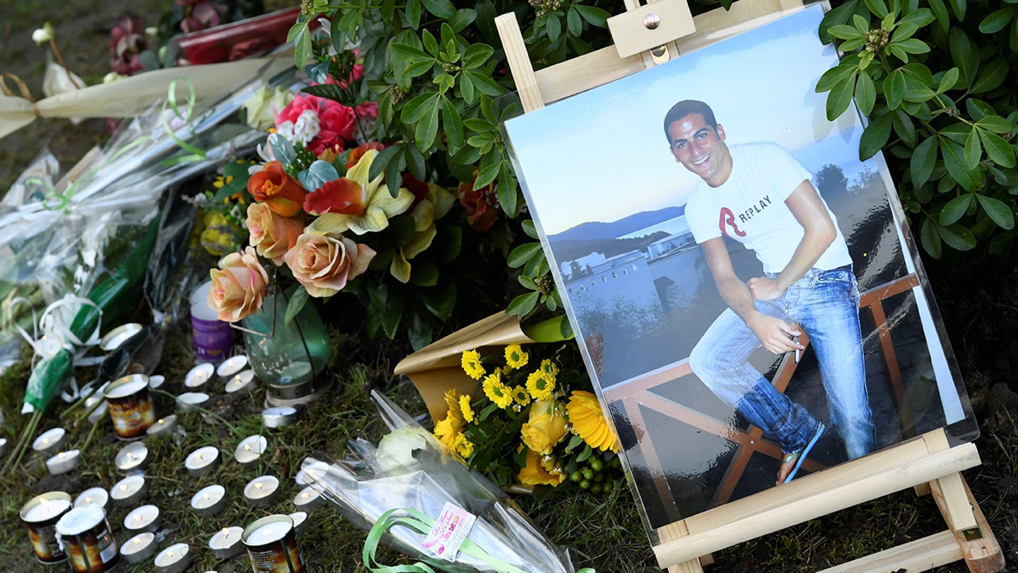Una foto de Ilan Halimi en un improvisado monumento conmemorativo el 13 de febrero de 2019, en Sainte-Genevieve-des-Bois. (Bertrand Guay/AFP a través de Getty Images)