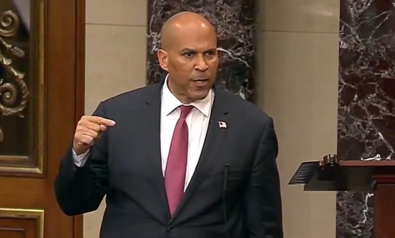 El senador Cory Booker, DN.J., golpea a los miembros de su propio partido como «cómplice» para el presidente Donald Trump después de que rechazaron las enmiendas que argumentó que evitaría que Trump eligiera a los ganadores y perdedores en lo que respecta al apoyo federal de financiación. (Fox News)