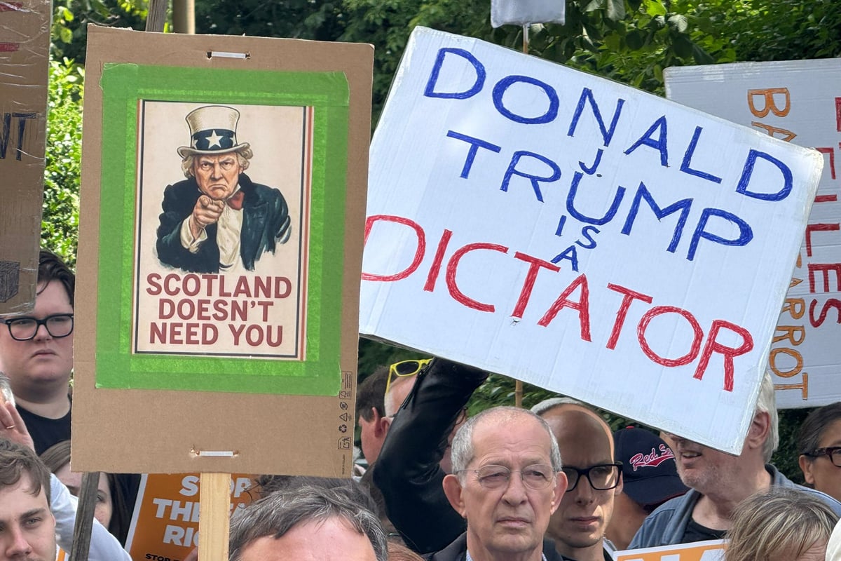 Cientos de manifestantes se han reunido en Edimburgo el sábado cuando el presidente Donald Trump comienza su viaje en Escocia.