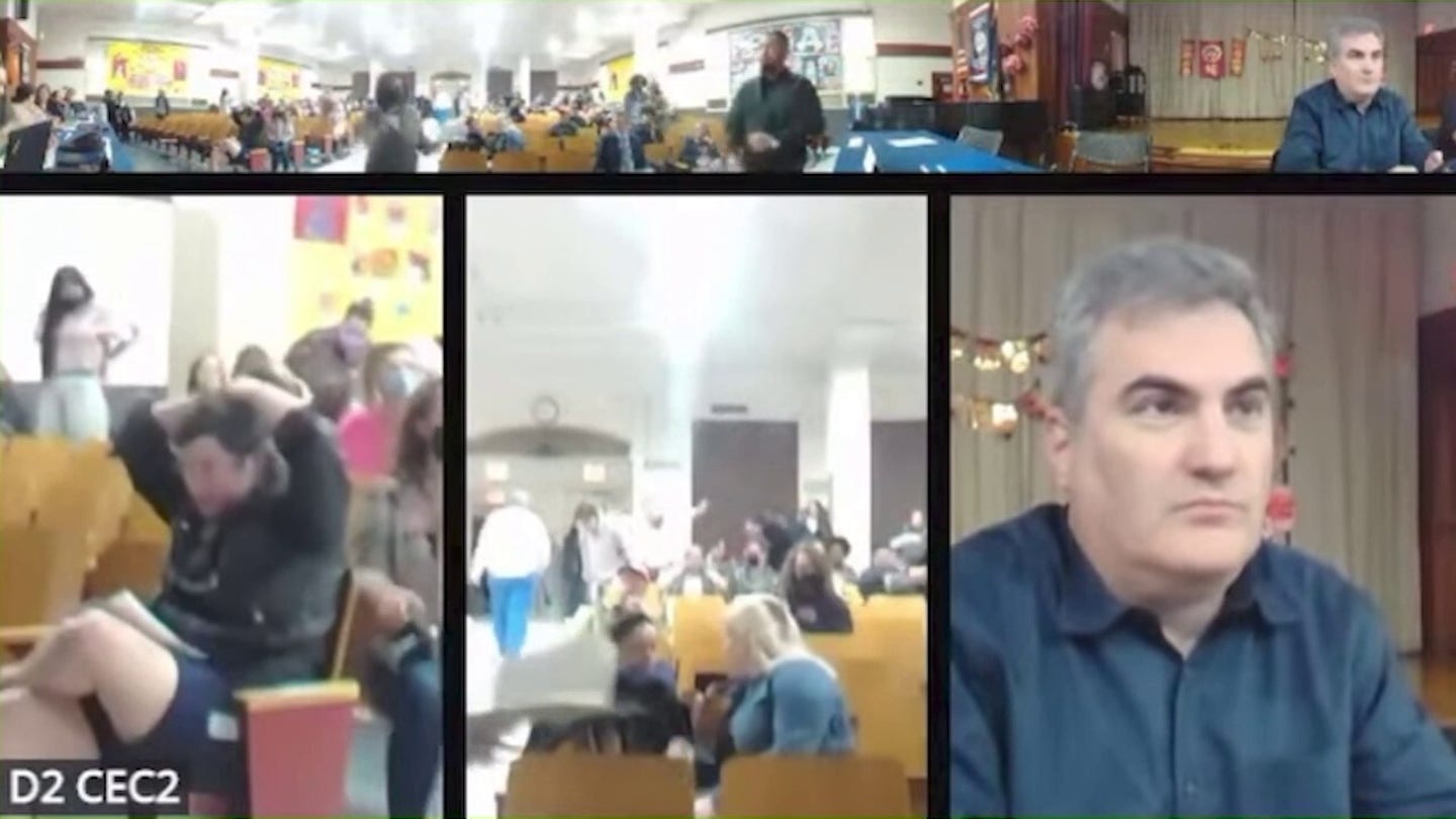 La reunión, que fue celebrada por el Consejo de Educación Comunitaria para el Distrito 2 (CEC 2), se celebró el 26 de febrero. Una transmisión de YouTube de la reunión muestra a los manifestantes que realizan en silencio el icónico baile de los 90, algunos fuera de sintonía con otros.