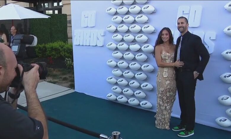 Los jugadores de los viernes por la noche y los funcionarios de los Eagles caminaron la alfombra verde fuera de la batería en Fishtown antes de entrar para la gran noche.