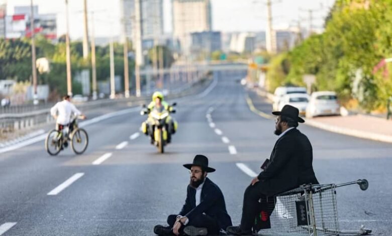 Múltiples intersecciones se cerraron al tráfico debido a las protestas ultraortodoxas masivas contra el reclutamiento de Haredim En las FDI, la policía de Israel declaró el miércoles.