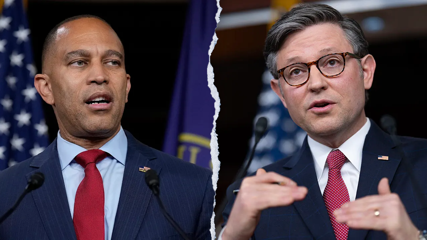 Líder de la minoría de la Cámara de Representantes Hakeem Jeffries, a la izquierda, y el presidente Mike Johnson, a la derecha (Getty/AP)