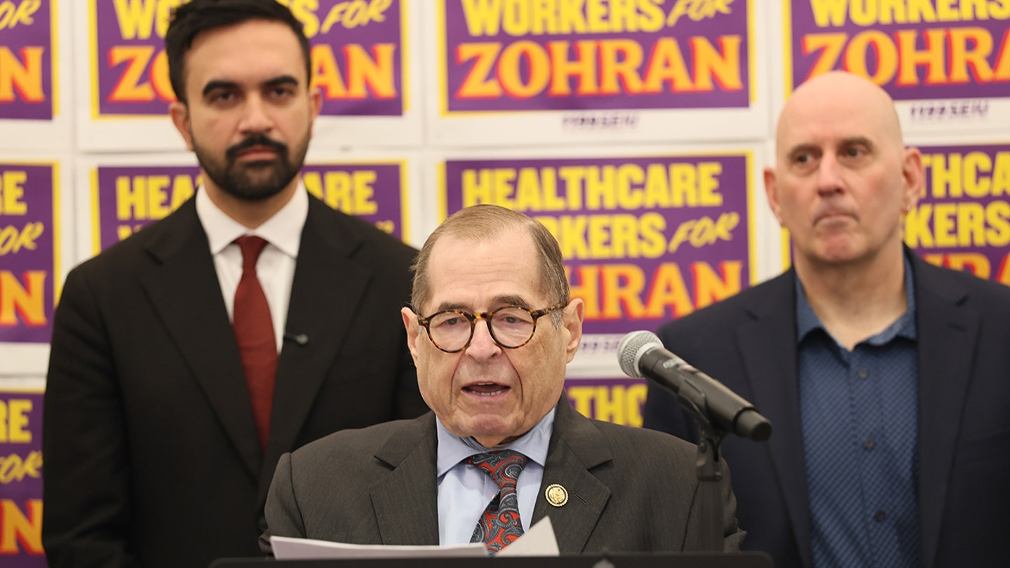 El representante Jerry Nadler, DN.Y., habla en apoyo de Zohran Mamdani el 11 de agosto de 2025, ya que la esperanza de alcalde anunció una gira «Cinco municipios contra Trump». (Michael M. Santiago/Getty Images)