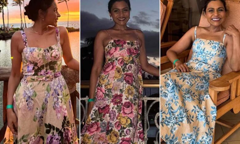 Mindy Kaling llevaba 3 vestidos florales en 1 semana, obtener el look