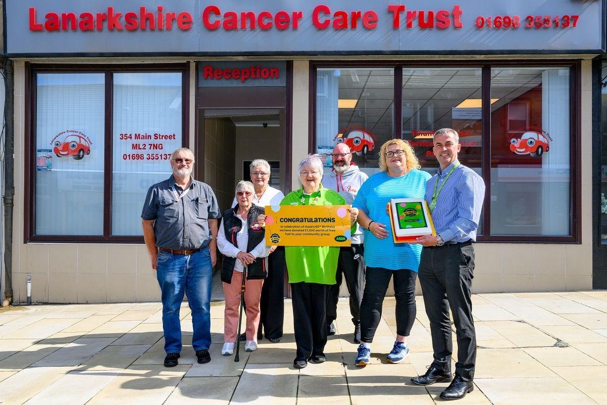 Los conductores voluntarios en Lanarkshire Cancer Care Trust estuvieron en una gran sorpresa esta semana cuando la campeona comunitaria Ann Binks de Asda Coatbridge les presentó un boleto de oro afortunado por £ 1,500 en combustible gratuito como parte de las celebraciones de cumpleaños número 60 de ASDA.