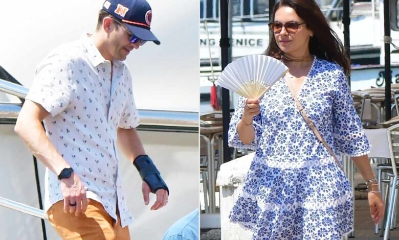 La pareja fue fotografiada pisando un yate el jueves 3 de julio en Venecia, Italia, mientras estaba de vacaciones en torno a su aniversario de bodas de 10 años. Kutcher, de 47 años, llevaba una camisa estampada azul y blanca combinada con pantalones cortos de color caqui, mientras que Kunis, de 41 años, llevaba un vestido estampado floral azul y blanco y chanclas.