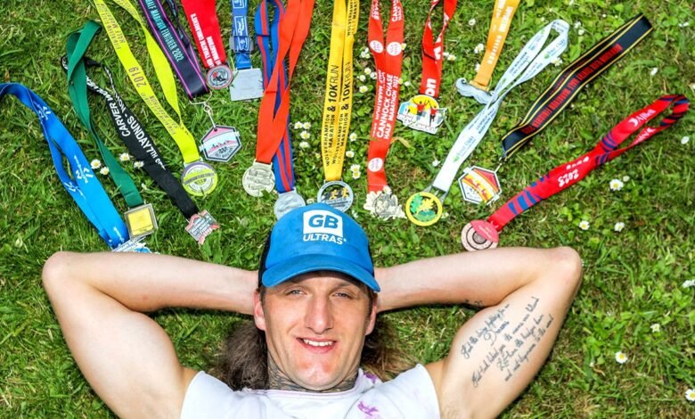 Molineaux estructura su semana alrededor de 13 carreras de media maratón, a menudo apilando varias carreras en un solo día, dijo. (Joseph Walshe / SWNS)