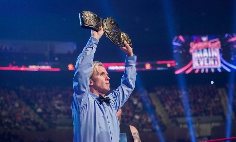 Charles Robinson sostiene el cinturón de campeonato de águila alada durante el «evento principal del sábado por la noche» en el Nassau Veterans Memorial Coliseum el 14 de diciembre de 2024 en Uniondale, Nueva York. (WWE/Getty Images)