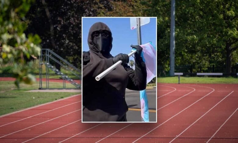 RELOJ: Pro manifestante LGBTQ arrestado por asalto de la pole de la bandera en California Track Meet