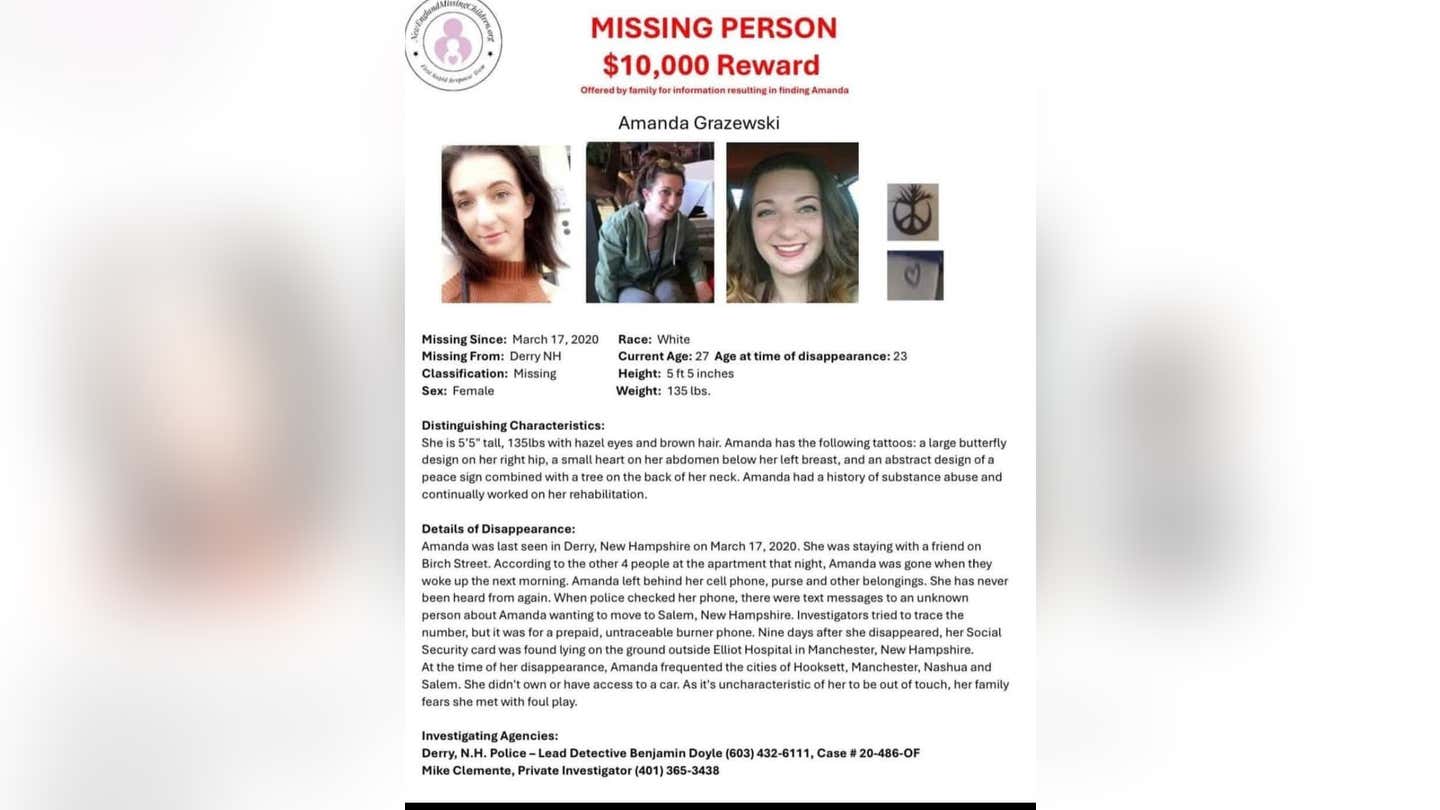Aunque la causa de la muerte, la identidad de la persona, la edad y el sexo biológico se desconocen en este momento, el descubrimiento se produce poco después de un comunicado de prensa presentado por el Departamento de Policía de Derry destacó el quinto aniversario de la desaparición de Amanda Grazewski.
