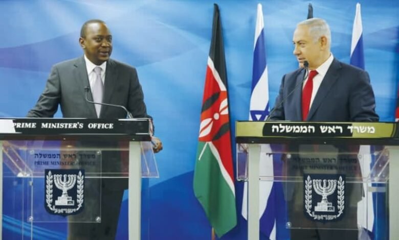 El primer ministro Benjamin Netanyahu y el entonces presidente de Kenia, Uhuru Kenyatta, entregan declaraciones conjuntas en Jerusalén en 2016. El comercio de Israel con Kenia, una de las economías más vibrantes de África, totaliza solo decenas de millones de dólares, dice el escritor. (Crédito de la foto: Amir Cohen/Reuters)
