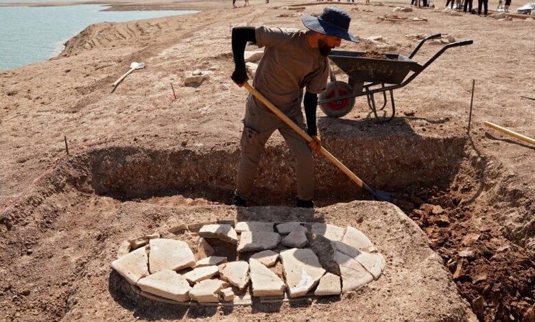 Arqueólogos en Irak afectado por la sequía Según un funcionario de antigüedades, descubrieron 40 tumbas antiguas después de los niveles de agua en el depósito más grande del país, según un funcionario de antigüedades.