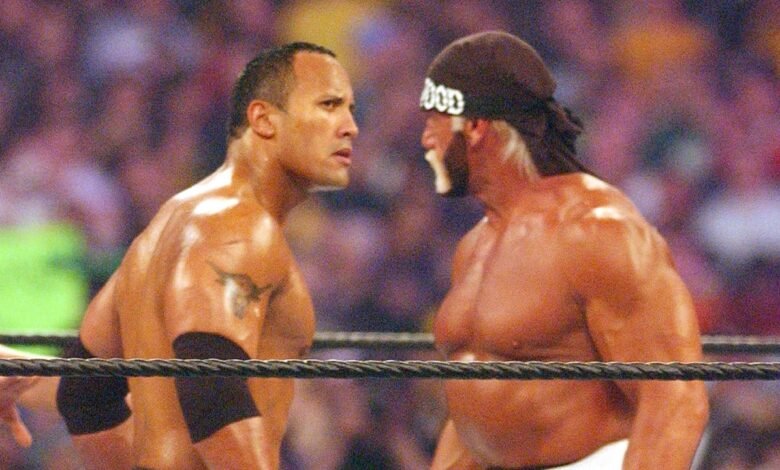 Hollywood Hulk Hogan y la roca en WrestleMania x8 (George Pimentel/Wireimage)